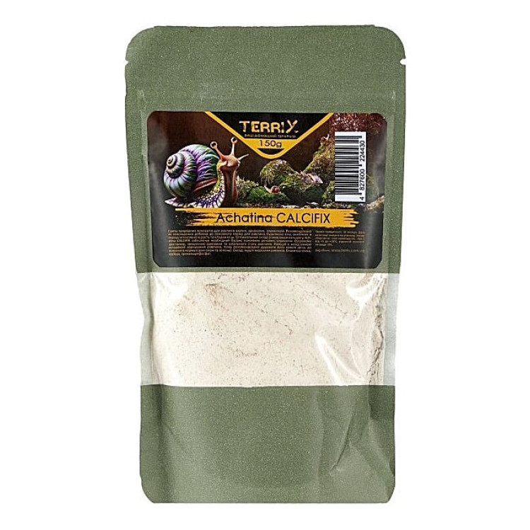 Суміш природних мінералів для равликів ахатин, архахатин, ліміколярій. Рекомендовано як повсякденна добавка до основного корму для равликів будь-якого віку, особливо в період інтенсивного росту та кладки яєць. Оптимальний склад різних видів кальцію у Achatina CALCIFIX забезпечує необхідний баланс поживних речовин, сприяючи здоровому зростанню, зміцненню раковини та загального стану равликів. Кальцій є невід'ємною складовою харчування равликів, тому рекомендовано додавати його кожен день до основного корму (свіжі овчі та зелень).