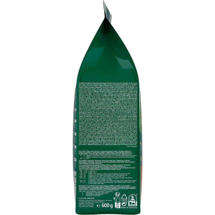 Переваги корму: TriVita-Complex: докозагексаєнова кислота з морських водоростей є однією з найбільш важливих і незамінних біологічно активних омега-3 жирних кислот, необхідних для серцевої діяльності, мозку та імунної системи. Пребіотик інулін забезпечує здорову мікрофлору кишечника і сприяє оптимальному травленню. Збалансоване співвідношення незамінних амінокислот гарантує високу біологічну цінність.