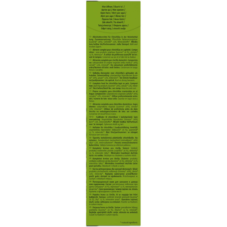Гранульований корм Vitakraft з високим вмістом солоду ідеально підходить для базового годування шиншили. Спеціально розроблена рецептура містить в собі всі необхідні речовини, а також велику кількість клітковини для оптимального травлення. Кожна гранула збагачена необхідними вітамінами. Корм ідеально підходить для вибагливих тварин, у яких, в даному випадку, відсутня можливість вибирати частину інгредієнтів.