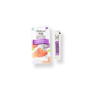 Натуральні функціональні крем-снеки для котів – Пюре з лосося (шкіра та шерсть) Natural Kitty Fuctional Creamy Treat Salmon Puree Skin&Coat 4х12 г