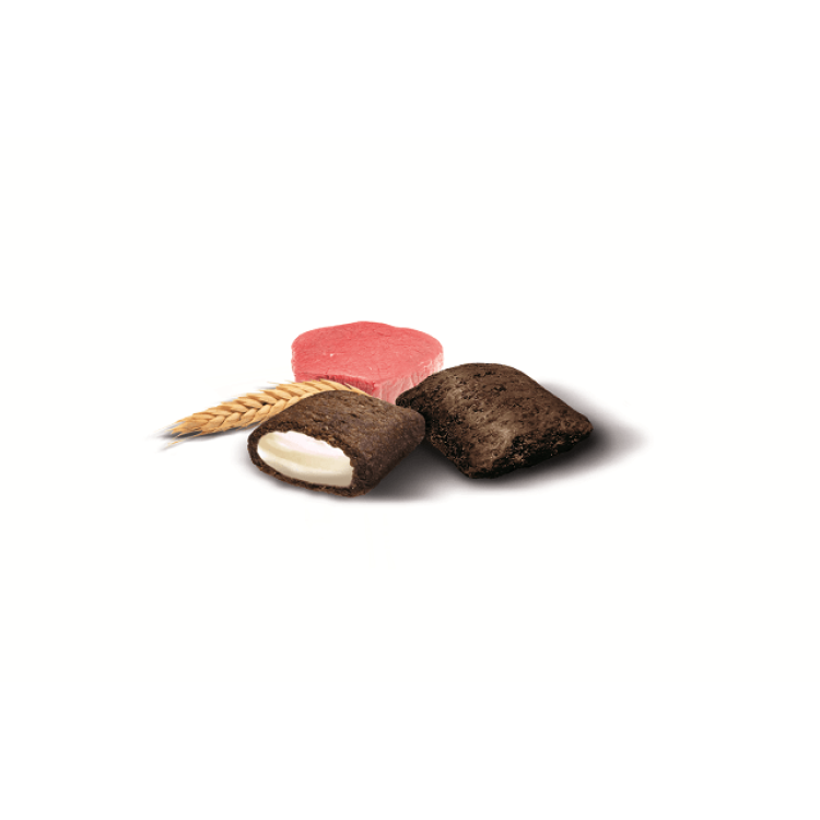 Склад: зернові, м›ясо та продукти тваринного походження, олії та жири, екстракти рослинного білка, риба та рибні продукти (лосось - 4%), продукти рослинного походження, мінерали, молоко та молочні продукти.