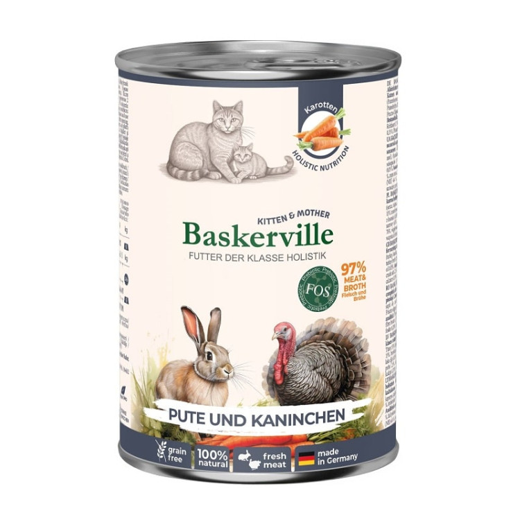 Baskerville виготовлений за спеціально розробленою рецептурою для кішок у період лактації та кошенят, які потребують підвищеного вмісту поживних речовин для активного росту та розвитку. Завдяки ретельно збалансованому складу він забезпечує здоровий ріст, правильне формування кісткової та м’язової тканини, а також стабільний рівень енергії як для турботливих мам, так і для активних малюків.