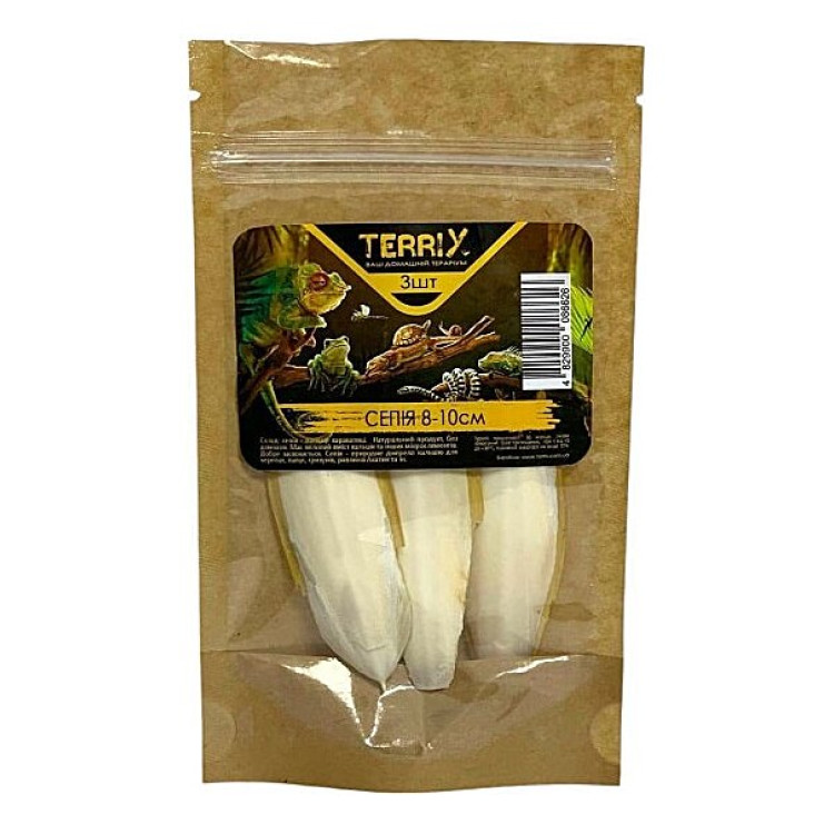 Сепія TerriX буває вигляді цілих панцирів або шматочків. Обидва варіанти є однаково корисними для тварин, оскільки містять ті ж самі поживні речовини, зокрема кальцій, фосфор та магній.