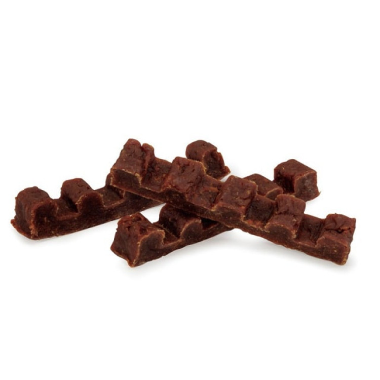 Натуральна м’ясна закуска для вибагливих улюбленцівСмачний батончик з ніжного м’яса кролика, нарізаний на порційні шматочки — ідеальне частування або винагорода для вашого собаки. Завдяки використанню єдиного джерела тва...