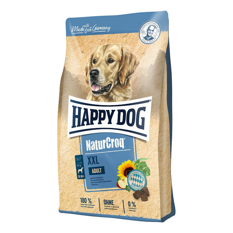 Повнораціонний корм класу преміум NaturCroq XXL розроблений для собак великих порід з урахуванням їх особливих потреб у харчуванні. Адже потреби великих собак у калоріях значно більші, ніж у собак дрібних порід. Тому у складі корму NaturCroq XXL - особлива комбінація поживних речовин з помірним вмістом білків та спеціально підібраним рівнем жирів. Смачні крокети великого розміру містять усі вітаміни та мінеральні речовини, які необхідні для збалансованого харчування.