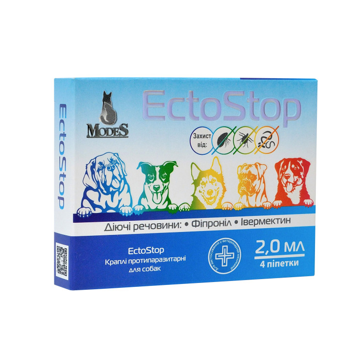 Препарат ЕктоСтоп - екто- та ендопаразитоцид, фармакологічні властивості якого зумовлені властивостями діючих речовин: фіпронілу та івермектину.